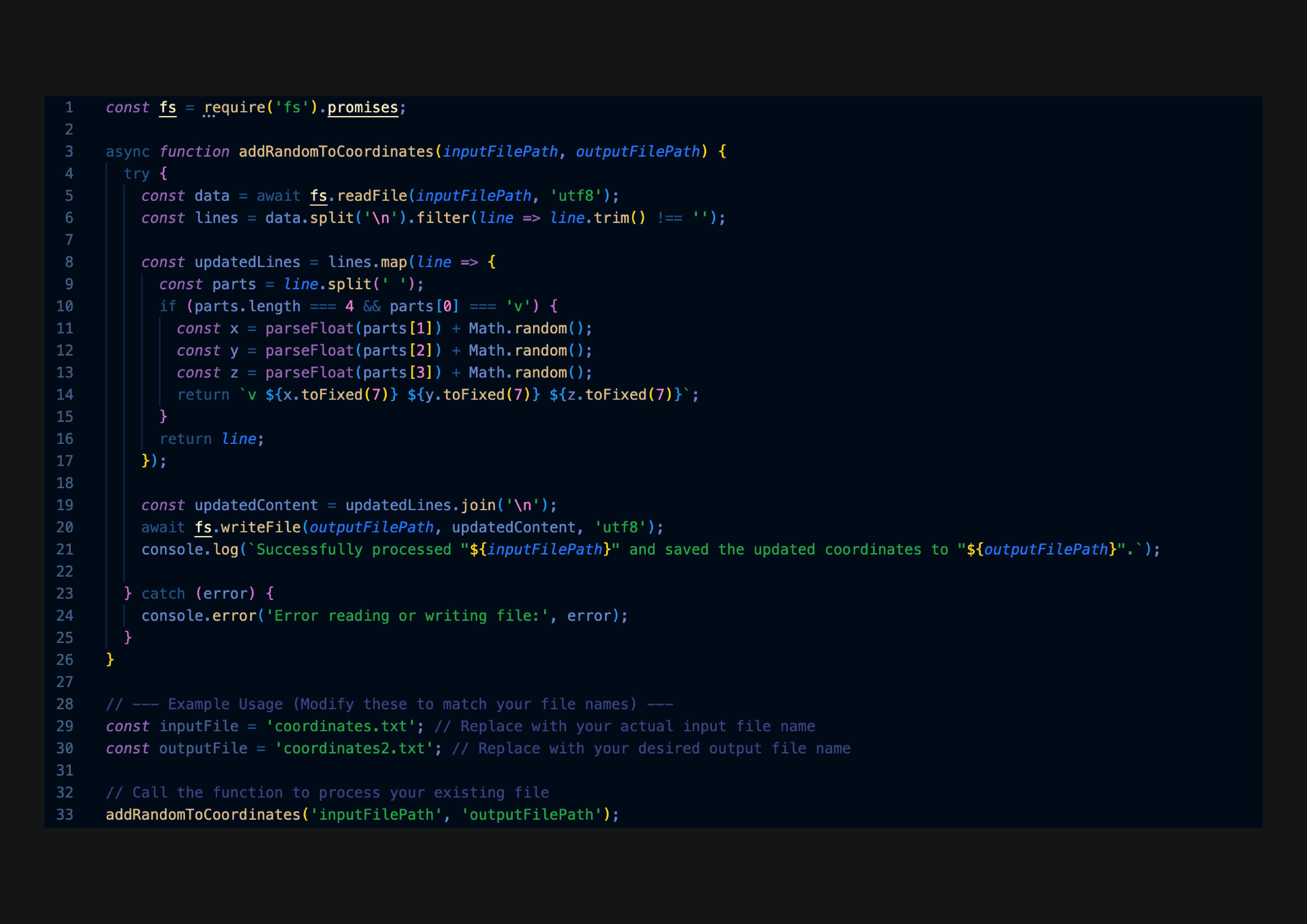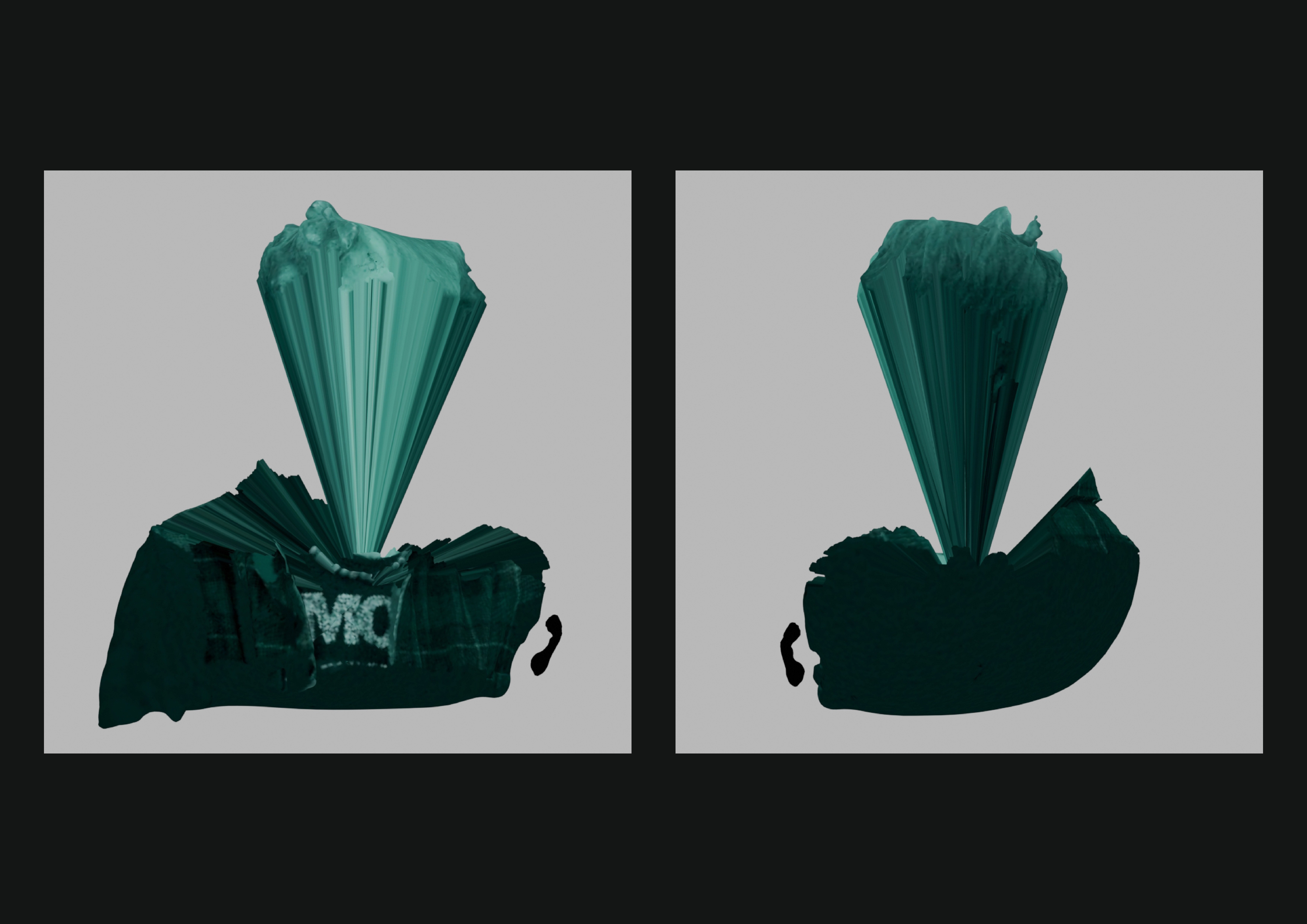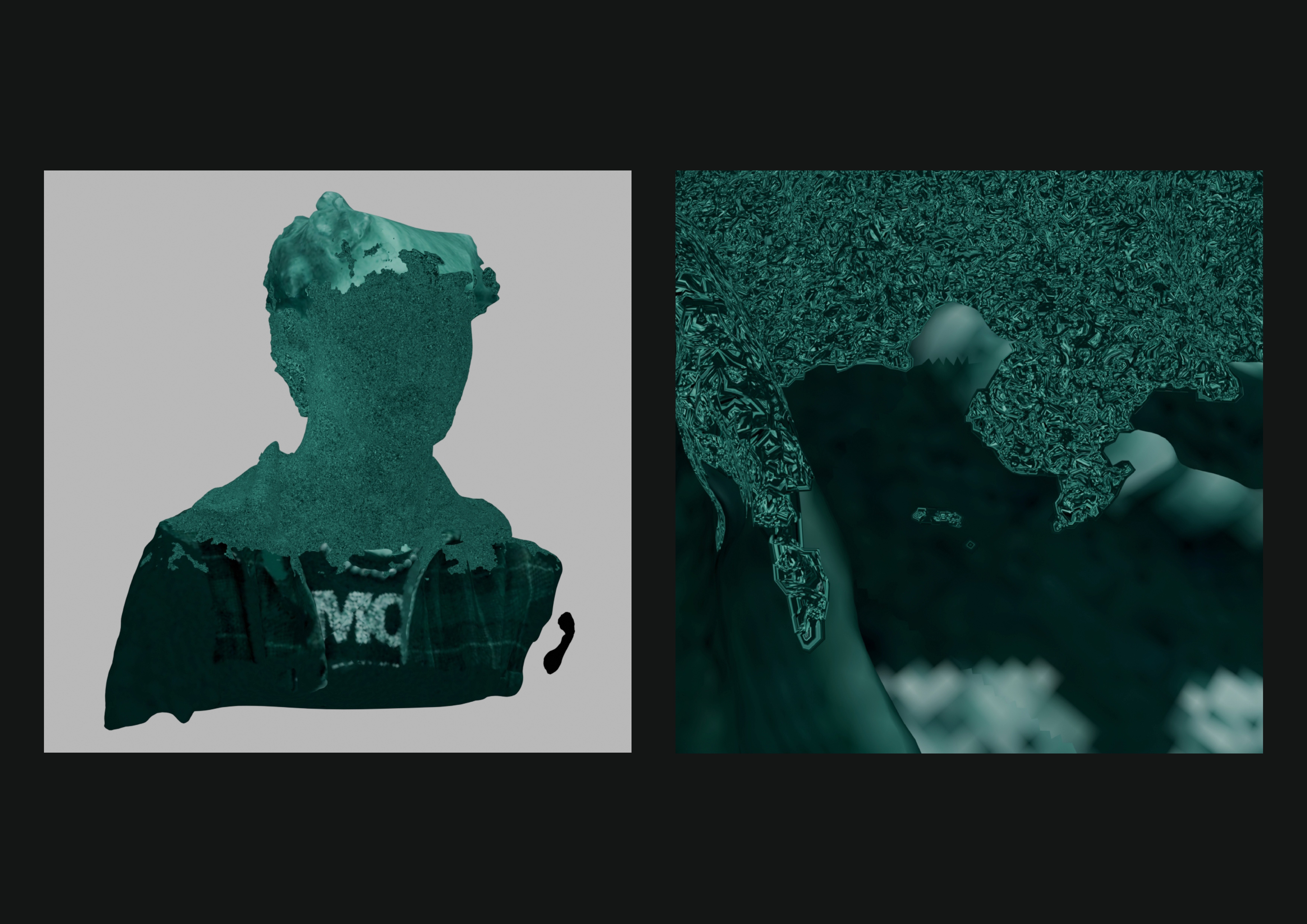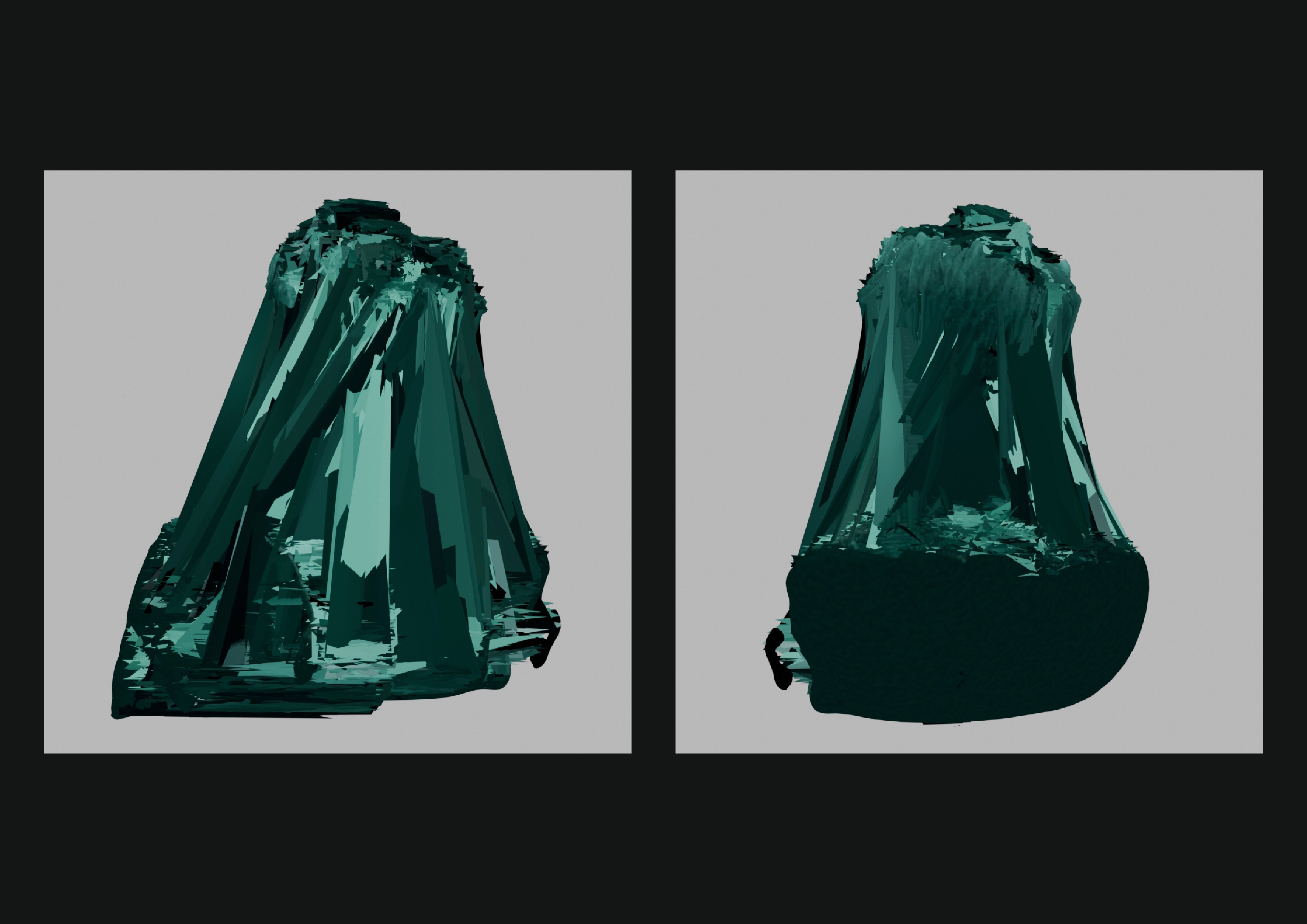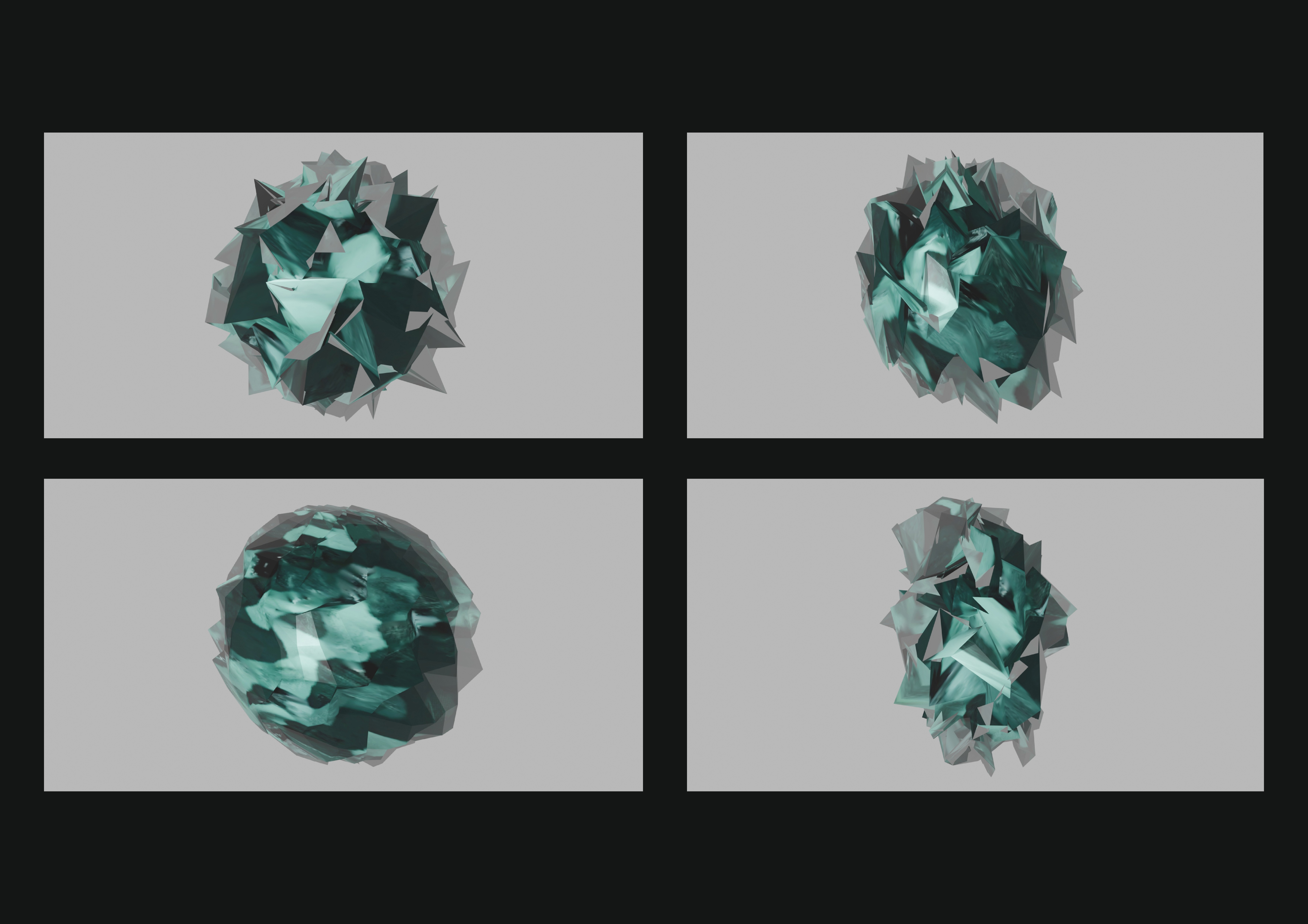 of the .obj file and embracing randomness, as opposed to consciously doing every alteration by hand. The core structure of the file was altered based on desired input. This way we were able to achieve extreme manipu-